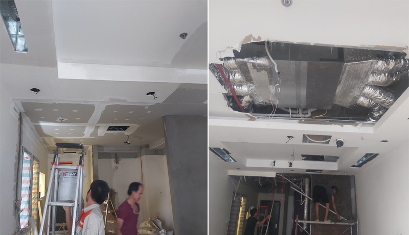 - Thay thế tấm thạch cao mới, cải tạo khung xương yếu.