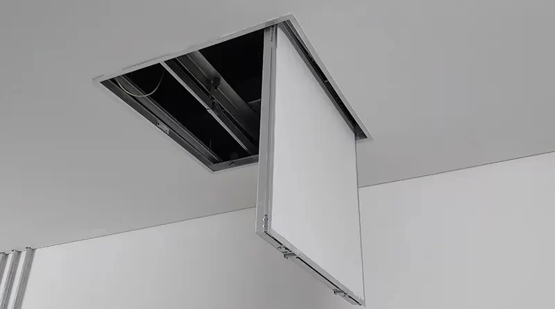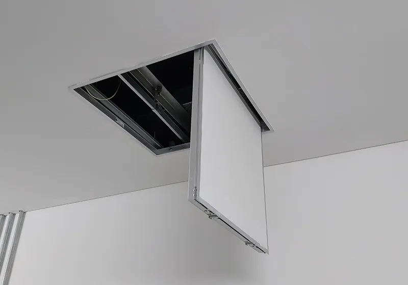 - Bảo vệ tính thẩm mỹ: Giúp che giấu các lỗ hổng kỹ thuật một cách tinh tế. Khi đóng lại, nắp thường phẳng mặt hoặc đồng màu với trần nhà, không gây mất mỹ quan như việc đục phá thủ công.
