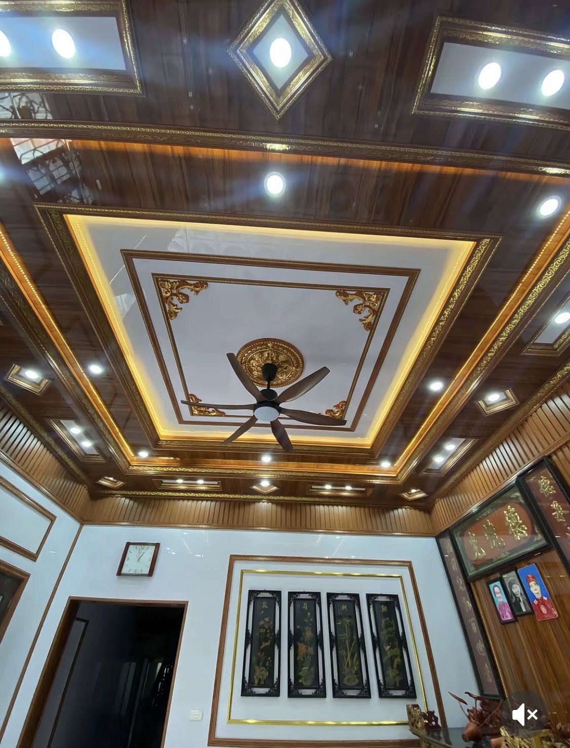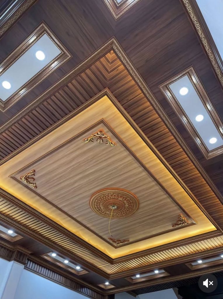 - Thi công trần lam sóng: Ốp trần giả gỗ, lam sóng cao/thấp tạo điểm nhấn.