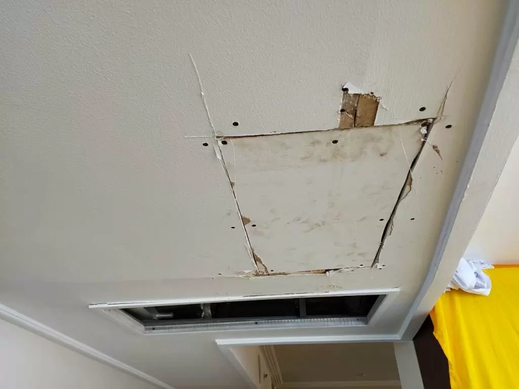- Hạng mục: Vá lỗ thủng, sửa trần xập xệ do cong vênh khung xương, thay tấm trần thả, xử lý ố vàng, ẩm mốc, sơn bả lại.