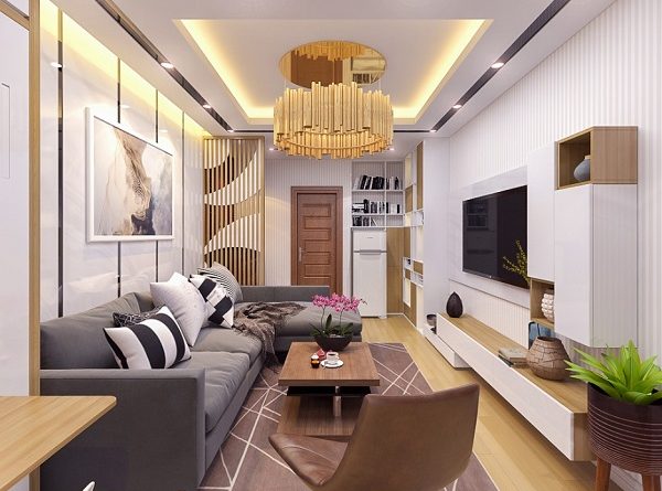 • Thiết kế trần: Trần giật cấp phức tạp hơn có chi phí thi công nhân công cao hơn trần phẳng.
